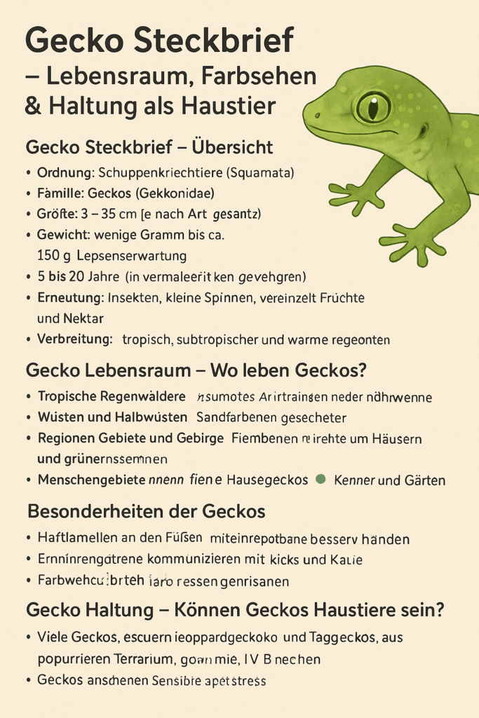 Geckos gehören zu den spannendsten Reptilien der Welt. Mit über 1.500 Arten sind sie auf fast allen Kontinenten zu finden. Ob in tropischen Regenwäldern, in heißen Wüsten oder sogar in Wohnhäusern – Geckos haben sich an viele Lebensräume angepasst. Neben ihren Kletterfähigkeiten und dem berühmten „Haftfuß“ ist vor allem ihr Farbsehen ein faszinierendes Thema. Gleichzeitig interessieren sich viele Tierfreunde für die Gecko Haltung im Terrarium.