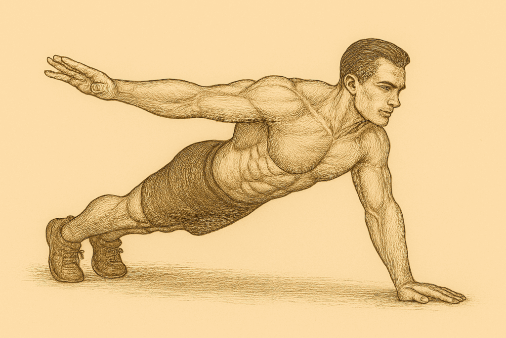 - Isometrische Plank mit Armheben