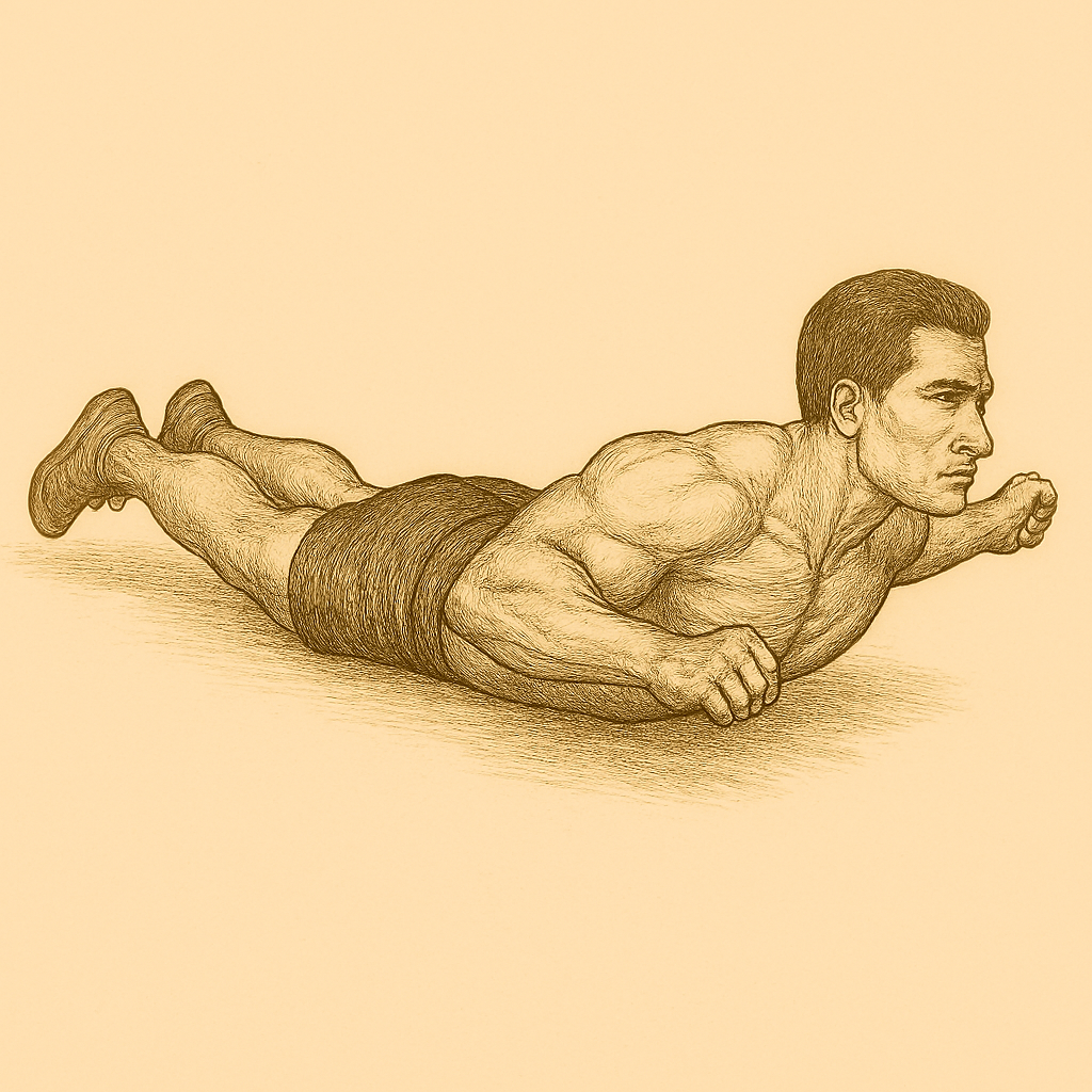 - Bauchlage, Arme und Beine gleichzeitig anheben